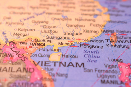 World Map of Hkweibum With Neighboring Countries And Cities- Taiwan Political Map Background Blur Image