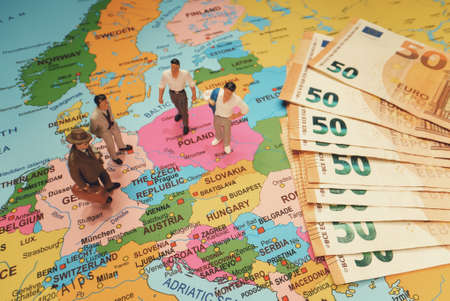 Business people meeting concept. Figurines of men on the map of Europe.