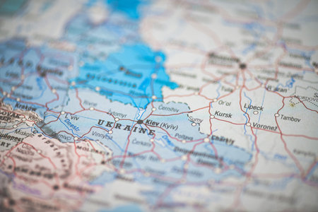 Detail of Kiev in Ukraine on the map