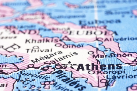 a close up shot of Athens on map, capital of Greece.