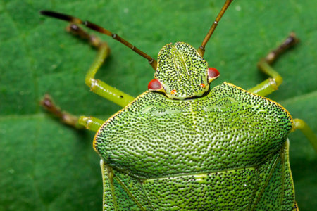 Shield Bug On A leaf. Extreme close up shoot. Hemiptera
