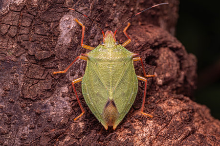 side of wild fly hemiptera Nezara Virdula Heteroptera pentatomidae palomena prasina on a wood
