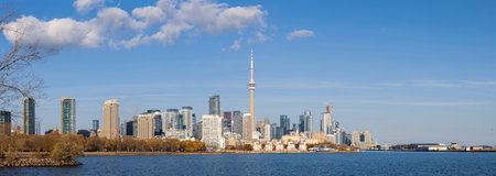 Scenic Toronto financial district skyline and modern architecture. View from Ontario lake.