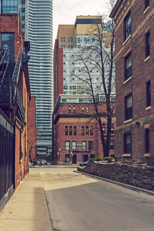 Toronto, Ontario, downtown cityscape. Old brick buildings and street view.