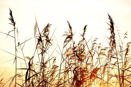 Reed in the evening light on the river bank of the Okavango, Botswana.