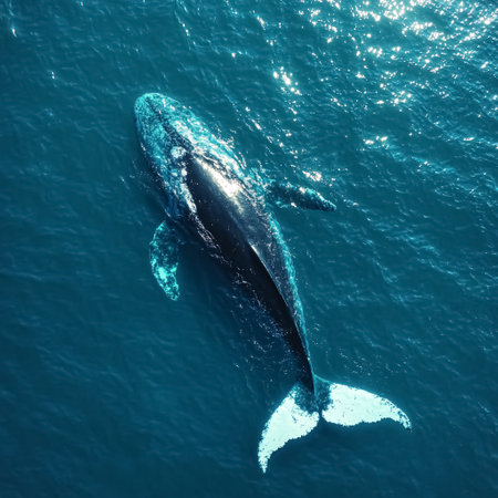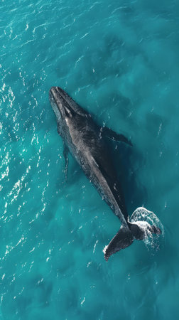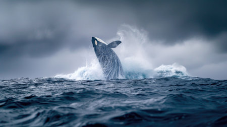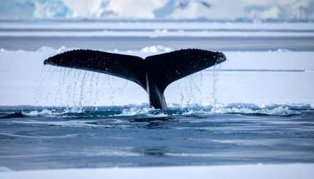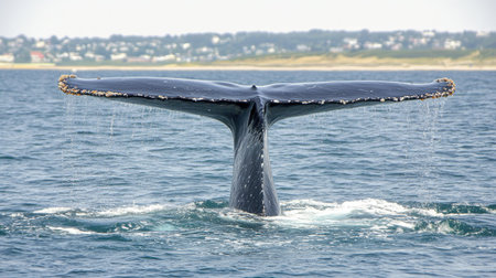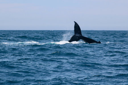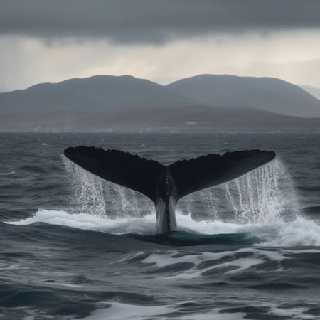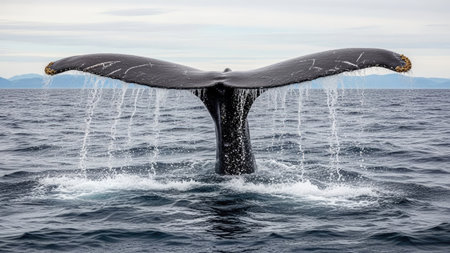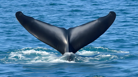 Majestic whale tail in the ocean, showcasing marine conservation efforts