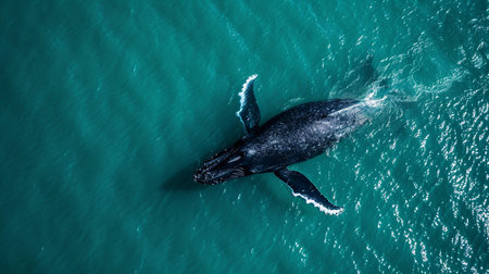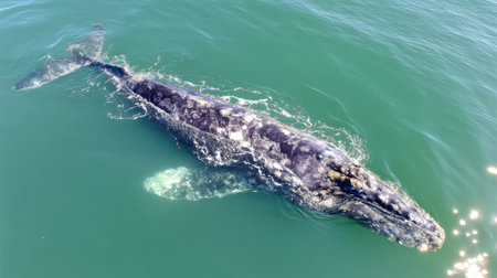 Generative AI : Aerial view of Gray Whale in Pacific ocean near Mexican shore Baja California Sur Mexico