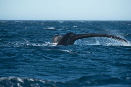 Sperm Whale tail. Picture taken from whale watching cruise in Kaikura, New Zealand