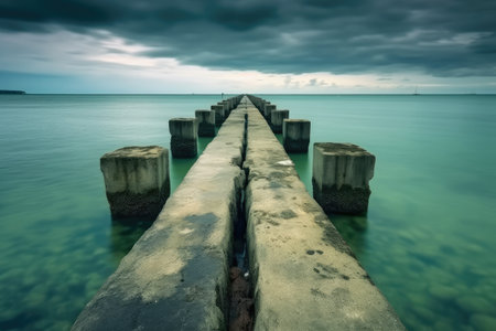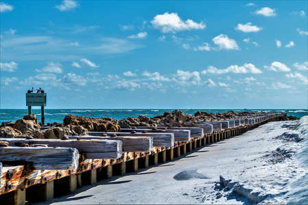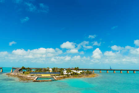 Old seven mile bridge shot on little Duck key, Florida with clouds and sea on a sunny day. Bridge going on forever, symbol of eternity.