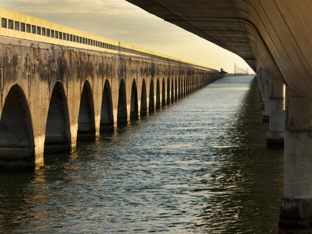 Florida Keys old bridge sunset at Bahia Honda Park in USA