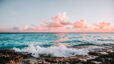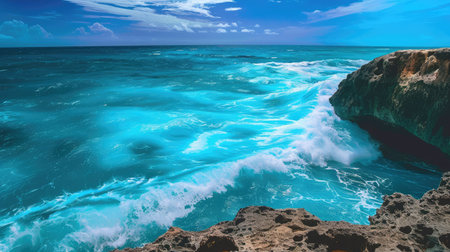 Beautiful crystal clear blue waters of the caribbean sea on rocky shoreline