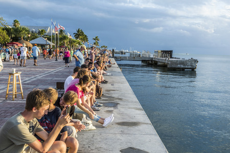 KEY WEST, USA - AUG 26, 2014: people enjoy the sunset point at Mallory square in Key West, USA. This place is the most popular sunset point in Key West.