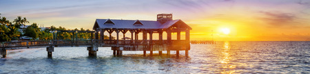 Panoramic sunrise landscape view of the small Islands Sunset Key and Wisteria Island of the Island of Key West, Florida Keys.