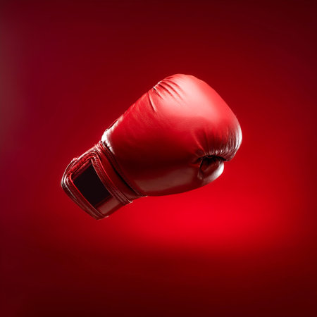 Red leather boxing glove floating or flying isolated on Clean Red background