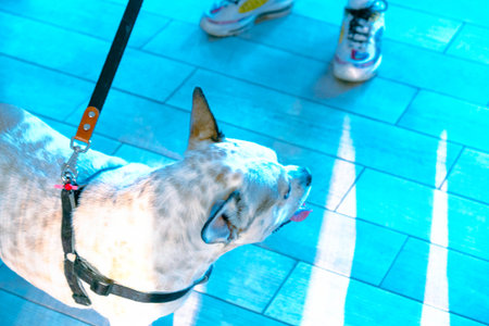A beautiful Catahoula Leopard Dog enjoying the sights in the city.
