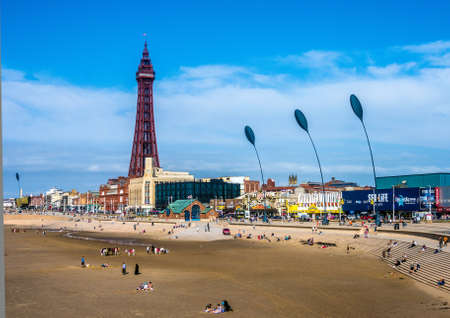 BLACKPOOL, UK - CIRCA JUNE 2016: Blackpool Pleasure Beach resort and Blackpool Tower on the Fylde coast in Lancashire
