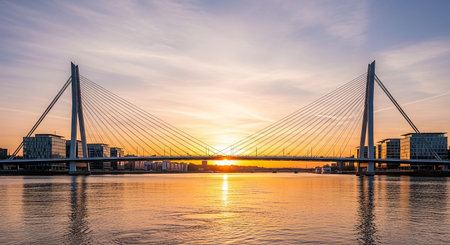 The bandra worli sea link shot at dusk in mumbai a famous landmark that connects the city