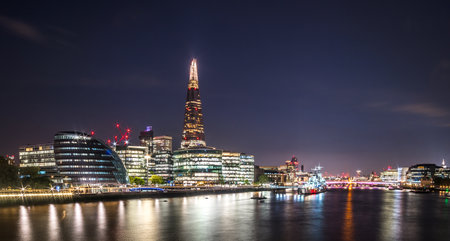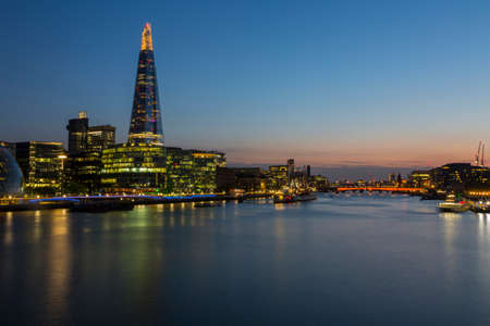 Magnificent view of Tower Bridge, the Shard and the River Thames at night, London, Uk.