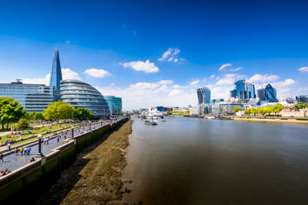 London, Great Britain - August 1, 2015: Cityscape at the Thames with the modern skyline of London.