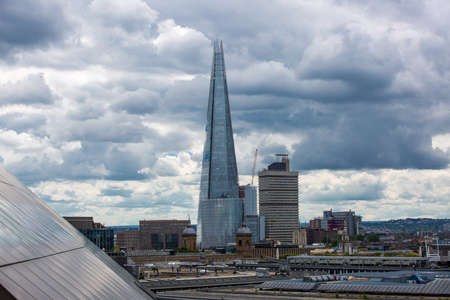 View of London with 309 6 metres high skyscraper Shard from river Thames