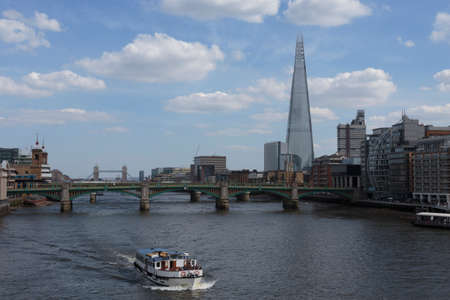 London, England – May 31, 2013 : View of city of London with The Shard and Southward Bridge across the River Thames