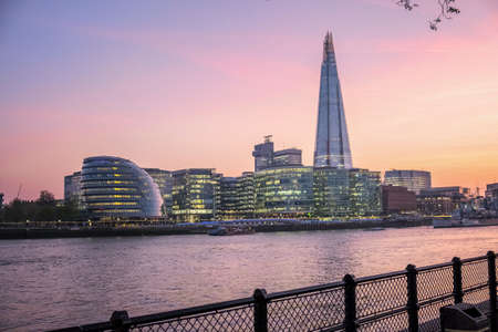 London skyline sunset City Hall and Shard on Thames river, London, UK.