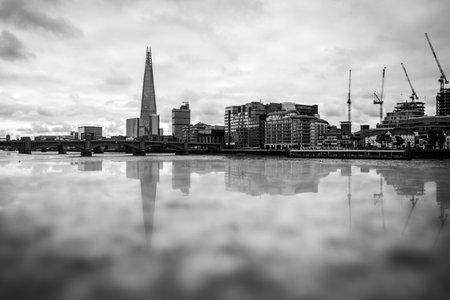 LONDON, UK - CIRCA SEPTEMBER 2019: The Shard skyscraper designed by Italian architect Renzo Piano is the highest building in town in black and white