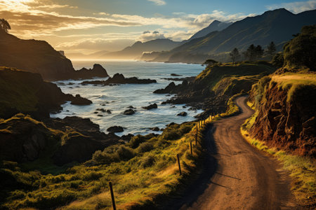 AI Generated. Scenic Coastal Route with Breathtaking Ocean Views and Rocky Cliffs