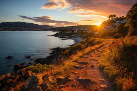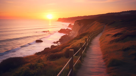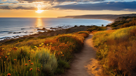 Torrey Pines Trail Sunset in the Pacific., generative AI