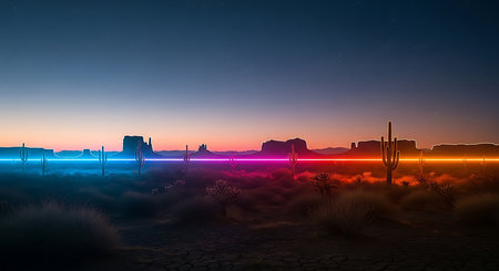 AI Generated. Vibrant desert sunset with cactus silhouette and colorful sky