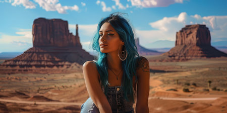 Beautiful young woman with blue hair in Monument Valley, USA.