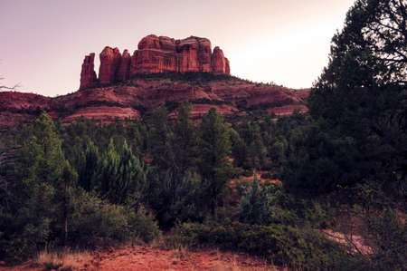 Cathedral rock in Sedona after sundown. Beautiful dark red tones