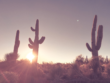 Arizona desert sunrise, saguaro cactus tree