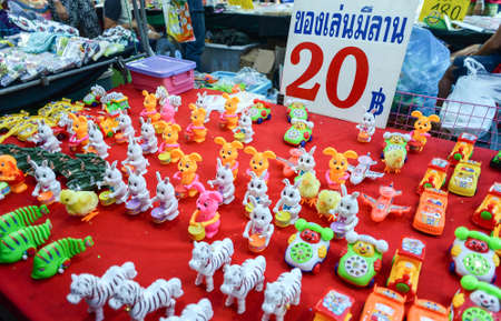 That Phanom, Thailand - February 22, 2016 : Toys for sale at market zone of That Phanom's Makhabucha day fair