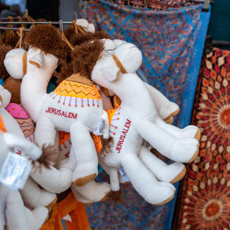 Cute camel stuffed animal souvenir of Jerusalem for sale to tourists in Israel