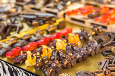 RAVENNA, ITALY - NOVEMBER 9, 2018: sunlight is enlightening several variations of shape, texture, colour, flavour and recipe of chocolate at Art & Ciocc, the XI Tour of chocolate makers