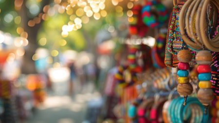 Blurry scene of an openair market b with unique crafts and souvenirs