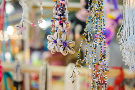 A colorful display of handmade crafts and ornaments hanging in a vibrant market, capturing the essence of artisanal craftsmanship and cultural diversity.