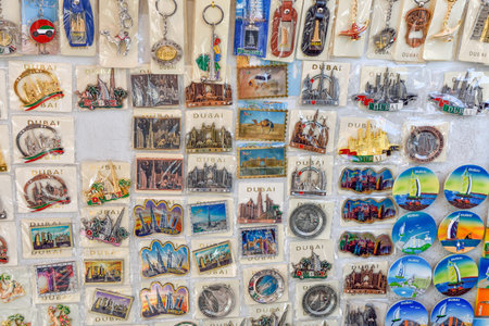 Dubai, United Arab Emirates -November 6, 2015: Magnet at souvenir shop in Dubai market