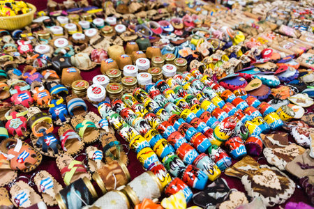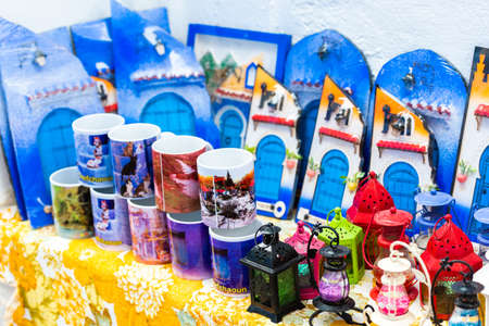 Chefchaouen, Morocco - November 4, 2019: Travel souvenirs in the store