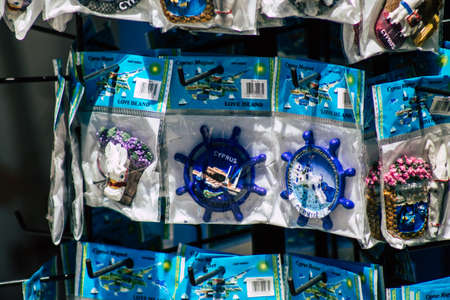 Limassol Cyprus May 14, 2020 Closeup of decorative objects sold in a souvenir shop in Limassol, Cyprus island
