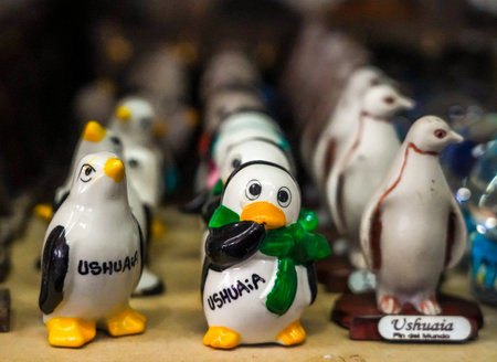 USHUAIA, ARGENTINA - FEBRUARY 5, 2020: Local souvenirs in Ushuaia, Argentina. It is the southernmost city in the world