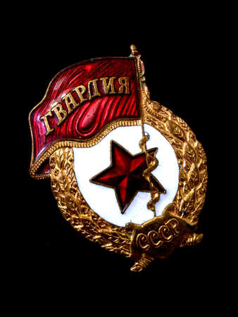 Badge of a combat guards unit of the USSR on military equipment of the twentieth century.