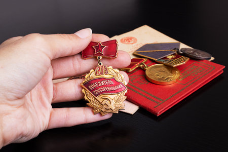 Belarus, Novopolotsk - November 19, 2021: Medal of the USSR in hand