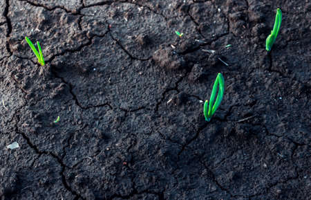 Ecology concept, growing sprout on dry soil.2020