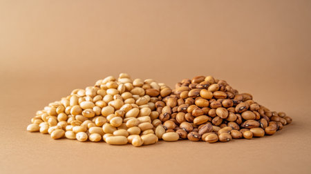 AI Generated. Pile of Organic Soybeans and Millet Seeds on a Neutral Background