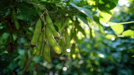 The Edamame in summer, Bright sunlight pierces dense foliage, the air feels hot, natural color