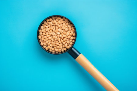 Glimpsing the Intricate Details: Exploring Spelled Wheat Cereal in a Top-View Perspective Through a Magnifying Glass