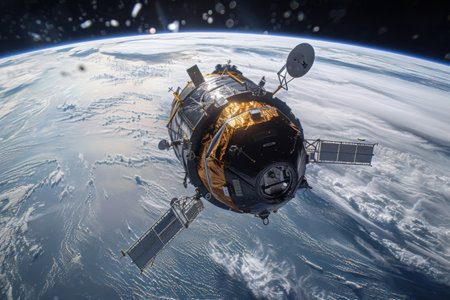 Space Exploration Satellite Orbiting a Blue Planet, a Stunning Display of Technology and the Cosmos