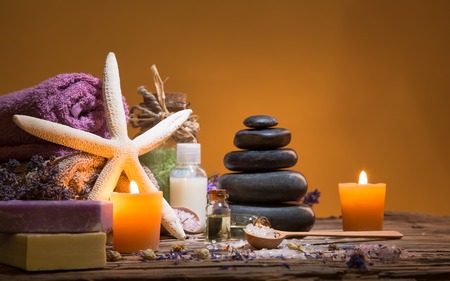 Items for spa, towels and candles